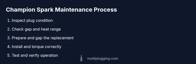 What is a Champion Spark and why it matters\n\nThe term champion spark refers to Champion brand spark plugs, known for a broad range of engines. In everyday terms, a champion spark is the ignition component that converts electrical energy into a precise spark that ignites the air-fuel mixture. For car owners and DIY enthusiasts, using champion spark plugs can offer reliable performance, consistent starts, and steady idling across many makes. The MultiPlugging team highlights that choosing the right plug for your engine—taking into account heat range, electrode material, and gap—can make a noticeable difference in how smoothly your engine runs. A well-maintained champion spark contributes to fewer misfires and smoother acceleration, which is especially important for older vehicles or engines with high mileage. Throughout this guide, we’ll emphasize practical steps you can take to inspect, select, and replace champion spark plugs with confidence.