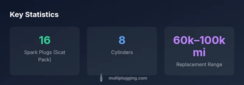 The Scat Pack's 6.4L V8 uses 16 spark plugs—two per cylinder. This dual-plug arrangement supports fast, efficient combustion under high-power operation. The figure aligns with most 6.4L Hemis and Hellcat-derived variants, though a few model years or special versions may differ. Always verify with your service manual or VIN-specific data.
