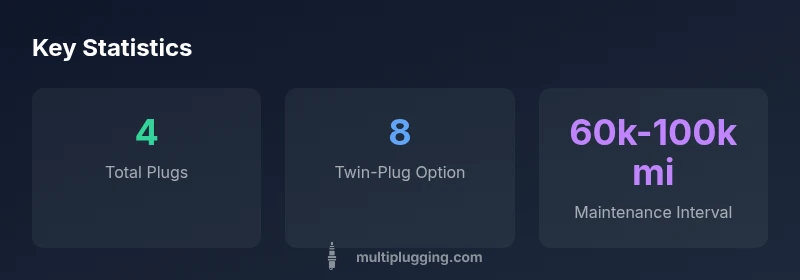 In practical terms, the phrase asks how many ignition devices are used to ignite the air-fuel mixture in a typical inline-four or V4 engine. For most modern cars, the answer is straightforward: four spark plugs, one for each cylinder. This simple mapping makes maintenance predictable: when you replace plugs, you commonly replace all four at once to maintain uniform ignition, timing, and combustion quality. According to MultiPlugging, this four-plug baseline is found in the vast majority of passenger cars built in the last two decades. The arrangement is usually a straight-line (inline) or compact V configuration, with spark plug terminals routed to a single or dual coil pack. The key is that every cylinder needs a reliable spark at the correct moment; if a plug fouls or fails, the cylinder becomes a misfire source, affecting idle quality and fuel economy. Bearing this in mind helps you plan maintenance around the ignition system rather than chasing one failing plug at a time.
