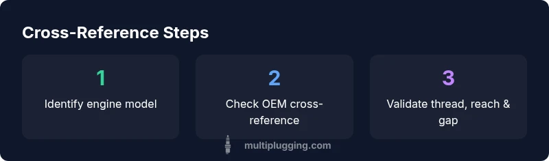 If you can’t locate a trustworthy cross-reference or if the engine exhibits persistent misfires after replacement, a professional mechanic or authorized service center should review the setup. They can confirm plug compatibility, perform a proper gap check, and ensure the ignition system is functioning correctly. Quick tips: document your cross-reference steps, stick to OEM guidance when possible, and test the engine thoroughly after replacement to avoid downstream problems.
