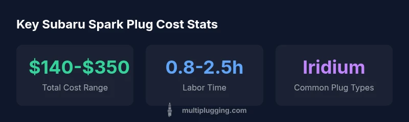 When you ask about Subaru spark plug replacement cost, the number tells only part of the story. The total expense is driven by several components: the plugs themselves, labor time, diagnostic checks, disposal fees, and any ancillary parts such as coil boots or gaskets. Subaru engines often use boxer configurations in many models, which can influence access and therefore labor time. Plugs come in several types—copper plugs are cheapest, while platinum and especially iridium plugs cost more upfront but last longer. If a diagnostic is needed for a misfire or stored codes, expect an additional charge. Across regions, labor rates vary, and a shop in a busy metro area will typically bill more for the same job. According to MultiPlugging analysis, 2026, labor often drives the cost more than parts, particularly on engines that require removing multiple coils to reach each cylinder.