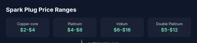 In 2026, spark plug prices typically range from about $2 to $20 per plug, depending on design and material. Copper-core plugs sit at the low end, while iridium and platinum variants command premiums due to longer life and better resistance to fouling. When you factor in brand premiums and regional availability, a full replacement can vary widely. According to MultiPlugging, the main drivers are material, heat range, and installation labor considerations.