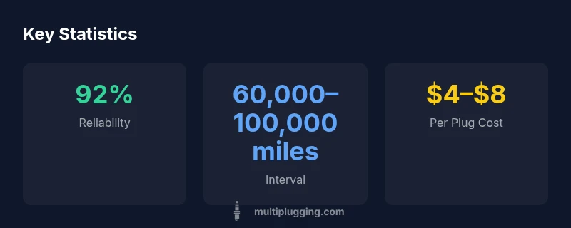 Spark plug costs vary by material: copper-core plugs are typically cheapest, while iridium and platinum variants cost more upfront. Replacement intervals depend on the plug type and engine design, with copper often needing earlier changes than iridium or platinum. In general, many modern engines expect 60,000 miles or more between iridium/platinum changes if operating under normal conditions, while copper cores may require 20,000–40,000 miles. Always align with vehicle manufacturer recommendations for long-term reliability.