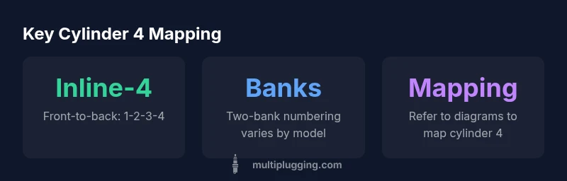 Which spark plug is cylinder 4 depends on engine layout and manufacturer numbering. In most inline-4s, cylinder 4 sits toward the firewall, with #1 at the front near the timing cover. On V-configurations, numbering varies by bank and model, so always verify with the factory diagram or service manual for your exact engine. This quick map helps you identify the correct plug location safely.