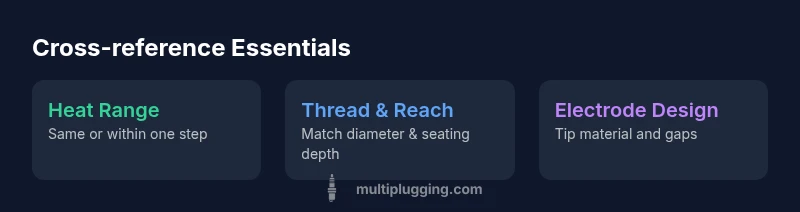 - Gather the original plug’s key specs from the owner’s manual or a known good cartridge. 2) Find a cross-reference chart that lists heat range, thread size, and reach for your target brands. 3) Filter results to matches on heat range, thread size, and reach. 4) Check electrode design (tip material) and gaps where provided. 5) Verify mounting torque and seating depth in the vehicle’s service guide. 6) If multiple candidates remain, compare fuel economy, emissions specs, and warranty notes. 7) physically inspect the selected plug for correct seating before installation. The goal is a safe, precise fit.