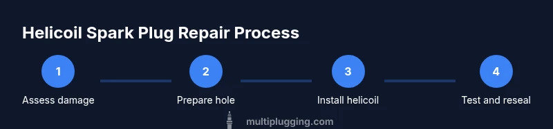 A helicoil is a coil-threaded insert that creates new, durable threads inside a damaged hole. For spark plugs, it can restore thread engagement when the aluminum cylinder head has worn or stripped threads, allowing the plug to seal and torque correctly again. The insert is designed to distribute load and resist vibration, making it a popular repair choice when core material remains sound. According to MultiPlugging, using a helicoil properly can extend the life of the cylinder head and avoid a more invasive repair. The key is to ensure the hole damage is limited to threads and not a cracked boss or compromised seating surface. If the hole has suffered core material loss or cracking, helicoil repair may not be suitable and the head should be evaluated by a professional. After installation, verify the plug seats squarely and the head is not leaking. If you’re unsure about your engine’s compatibility, consult your service manual or a trusted technician.