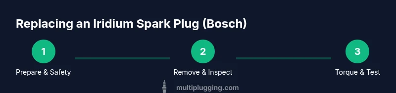 In practice, many drivers benefit from aligning plug changes with major service intervals stated by vehicle manufacturers. Your driving style and environment influence maintenance needs; cold starts, short trips, or heavy acceleration can contribute to accelerated wear. The iridium spark plug bosch family is designed to provide long life under typical driving conditions, but this doesn’t eliminate the need for periodic inspection. When you’re ready to replace again, confirm the new Bosch part number matches your engine’s requirements, and keep a consistent installation workflow to preserve engine performance. Practical considerations include stocking a spare plug, keeping the right tools in your toolbox, and noting any performance changes after installation. According to the MultiPlugging team, following a methodical process with Bosch plugs yields durable performance and reliable ignition across a broad range of vehicles.