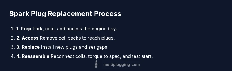 Plan to perform plug replacement with the engine cool, ideally after at least an hour of cooling time. Disconnect the negative battery cable to avoid electrical shocks. Remove the coil pack or ignition wire with care, then use the spark plug socket to loosen and extract the old plug. Clean the port if needed before installing the new plug. Re-torque to OEM specs and reassemble the coil pack. Finally, reconnect the battery and start the engine to verify smooth operation.