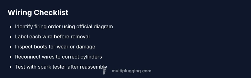 Before trying any fix, ensure you have a clean, dry work area and protective gloves. Start with the basics: confirm the battery is disconnected when removing wires, and inspect each wire for cracks, corrosion, or damaged boots. Use the service manual or a reputable online diagram to verify the correct firing order for your exact engine. If you’re unsure, label wires as you remove them and take a photo from multiple angles. A spark tester can help confirm each cylinder fires after you re-route wires; if you see inconsistent spark, the issue may be another ignition component or a timing problem.
