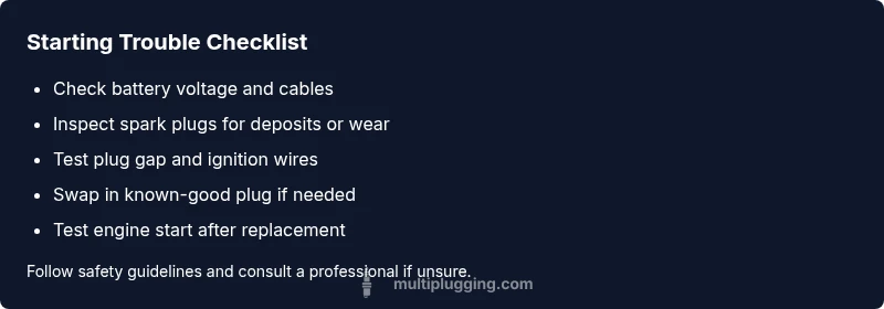 A practical, step-by-step troubleshooting guide to diagnose starting problems caused by spark plugs, with safe checks, clear fixes, and maintenance tips.
