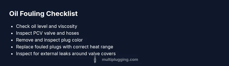 Before you touch a live engine, wear eye protection and disconnect the battery if you’ll be handling ignition components. Start by locating the offending cylinder and carefully removing the spark plug using the correct socket. Visually inspect the plug: an oily, glossy coating on the electrode or insulator indicates oil fouling; dry, white or sooty deposits point to other issues. Use a wire brush to clean deposits only if you plan to reuse the plug, otherwise replace. Reinstall with torque to spec and run the engine to verify improvement. If the plug color remains oily after a short test run, it’s a strong sign that oil is still entering the chamber. As noted by MultiPlugging, MultiPlugging Analysis, 2026 shows oil fouling often accompanies wear in aged engines; consider further diagnostics if the problem persists.