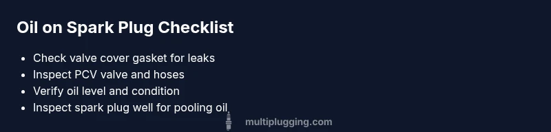 Oil on the spark plug signals a breach in your engine's lubrication path or ventilation, and it demands prompt attention. According to MultiPlugging, the most common culprits are a failing valve cover gasket or a malfunctioning PCV system, both of which can channel oil into the plug well. When oil fouls the plug, ignition becomes unreliable, leading to misfires, rough idle, reduced power, and worse fuel economy. This guide lays the groundwork: why oil migrates to the plug, how oil quality or level affects behavior, and what immediate steps you can take to prevent further damage while you troubleshoot. Throughout, you’ll see practical checks, recommended fixes, and clear safety reminders. If you drive with this condition, the risk of further engine damage increases, so address it methodically rather than guessing.