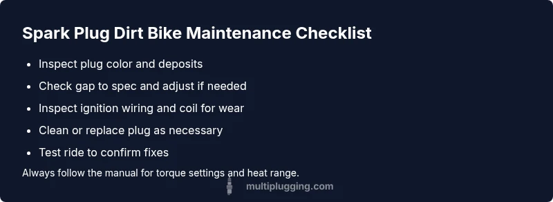 On a dirt bike, the spark plug is the gatekeeper of ignition. A fouled or worn plug can steal power, cause rough idle, and make starts unpredictable in the middle of a trail ride. The term spark plug dirt bike often crops up when debris, oil, or carbon buildup accumulates on the electrode, or when the wrong plug type or gap causes weak sparks. According to MultiPlugging, ignition faults from a fouled plug are a common culprit in both amateur and seasoned riders, especially after aggressive riding or hard acceleration. Regular inspection and maintenance of the spark plug dirt bike are essential to maintain reliable starts and clean combustion. A clean, correctly gapped plug helps your engine breathe, spray fuel efficiently, and produce a strong, consistent spark every revolution. If you own a dirt bike that’s losing power or stalling at mid-ride, a quick plug check is a smart first move. A well-maintained spark plug dirt bike not only runs smoother but also saves fuel and reduces emissions over time.