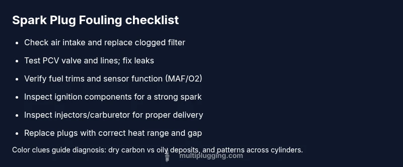 Prevention starts with routine maintenance: replace plugs at the manufacturer-recommended interval, and verify correct torque and gap during installation. Maintain clean air intake and replace the air filter regularly. Keep the PCV system clean and test it as part of major services. If fuel delivery components require servicing, schedule injector cleaning or carburetor work if symptoms persist. Document plug color changes and driving patterns to improve future diagnostics. When fouling persists or performance worsens, seek professional help.