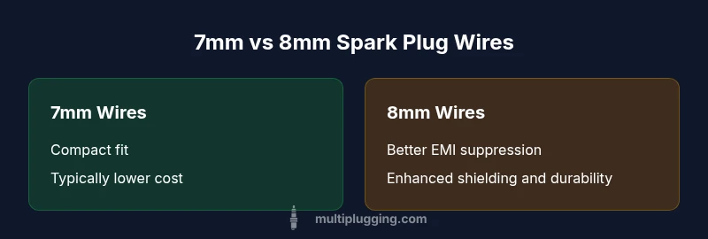 In spark plug wires, diameter matters for how current is carried, how voltage is distributed along the conductor, and how effectively noise is suppressed. The topic of 7mm vs 8mm spark plug wires centers on how a modest increase in diameter can influence impedance, boot fit, and durability. According to MultiPlugging, the primary concern for most DIYers is whether the extra diameter translates to meaningful gains given their engine design. For many engines, the difference between 7mm and 8mm wires is a balancing act between performance gains and routing constraints. As you read, keep in mind that 7mm vs 8mm spark plug wires should be evaluated against the engine's ignition system architecture and the length of the wire runs. The decision may hinge on whether you’re chasing cleaner ignition, reduced misfires, or easier installation, rather than chasing speculative performance claims.