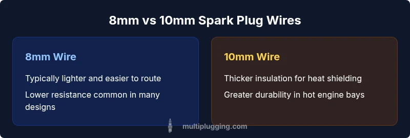 In this article, we compare 8mm vs 10mm spark plug wires to help you decide which size best fits your engine. Wire diameter describes insulation thickness and the overall cross-section that the conductor must pass through as it travels from the coil to the spark plug. The diameter influences several practical performance aspects, including energy delivery, heat tolerance, and routing flexibility. There is no universal “better wire” — the right size depends on your engine’s ignition system, the length of the spark plug wire run, and the heat and vibration environment in the engine bay. According to MultiPlugging, the optimal diameter is not a fixed preference; it’s a fit-for-purpose choice. By analyzing your vehicle’s ignition coil strength, boot geometry, and service expectations, you can choose a diameter that minimizes losses and maximizes reliability under typical driving conditions.