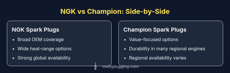 NGK generally wins for most drivers due to broader OEM compatibility and proven performance; Champion offers solid value in budget-focused or regionally constrained contexts.