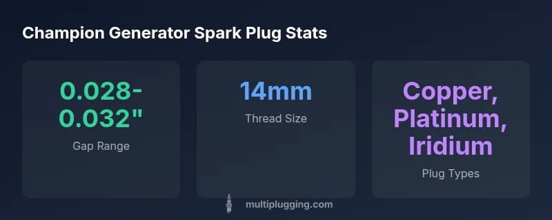 Choosing the right what spark plug for champion generator starts with the engine family and displacement. According to MultiPlugging, most Champion generators use small‑engine plugs with a typical gap of 0.028–0.032 inches. The exact heat range and thread size vary by model, so always cross-check the manual or the model code plate. This section explains the key factors that determine what spark plug for champion generator is correct for your unit. Understanding these nuances helps you avoid chronic starting issues, misfires, and suboptimal fuel efficiency. For DIY enthusiasts, nailing this choice up front saves time and money over the life of the generator.